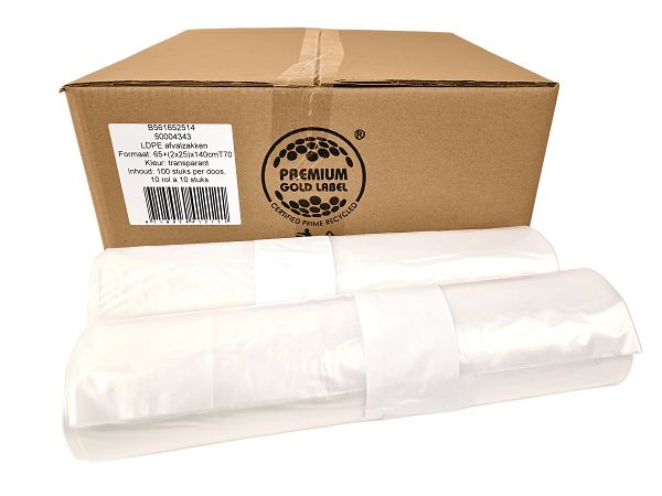 LDPE Zak T70 Transparant 65+(2x25)x140cm